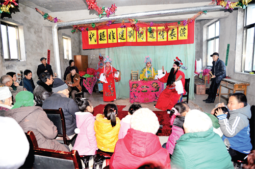 為了搶救劉街道情“非遺”劇種,弘揚(yáng)和傳承雁門文化,新高鄉(xiāng)劉街村“ 兩委”班子多方籌措資金,購買服裝道具和文武場樂器,于近期成立了由30多人組成的劉街道情劇團(tuán),由老藝人傳授技藝。他們經(jīng)過3個多月的精心排練,已排練出《李大開店》、《夜宿花亭》、《雷橫磕枷》、《大上吊》、《劈棺》、《?;稹返?個劇目,將于元宵節(jié)期間亮相于縣城街頭,向全縣人民匯報(bào)演出。圖為熱心觀眾觀看劉街道情《李大開店》劇目的排練。(石俊文 劉睿 攝)
