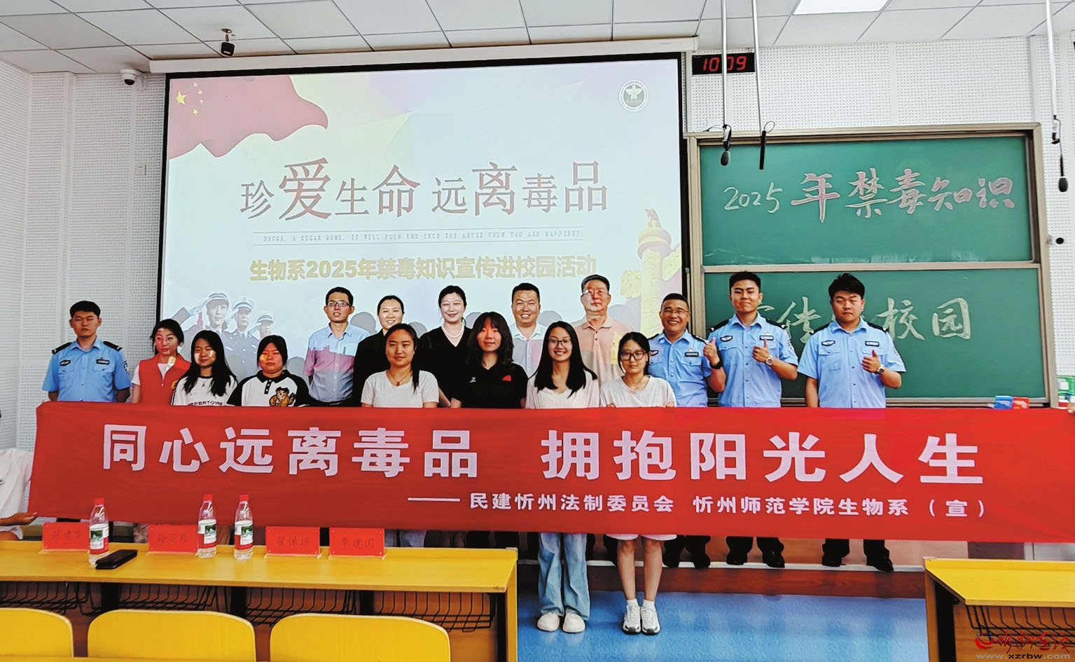 為切實(shí)增強(qiáng)青少年識(shí)毒、防毒、拒毒的意識(shí)和能力,守護(hù)校園凈土,護(hù)航青春夢(mèng)想,6月13日上午,一場(chǎng)主題為“防范青少年藥物濫用”的聯(lián)合宣教活動(dòng)在忻州師范學(xué)院生物系展開。民建忻州法制委員會(huì)攜手忻州師范學(xué)院生物系共同邀請(qǐng)山西省強(qiáng)制隔離戒毒所四級(jí)高級(jí)警長(zhǎng)、山西“蒲公英”禁毒宣講團(tuán)團(tuán)長(zhǎng)張俊和深入忻州師范學(xué)院,為150余名師生帶來了一場(chǎng)震撼心靈、啟迪思想的禁毒教育講座。