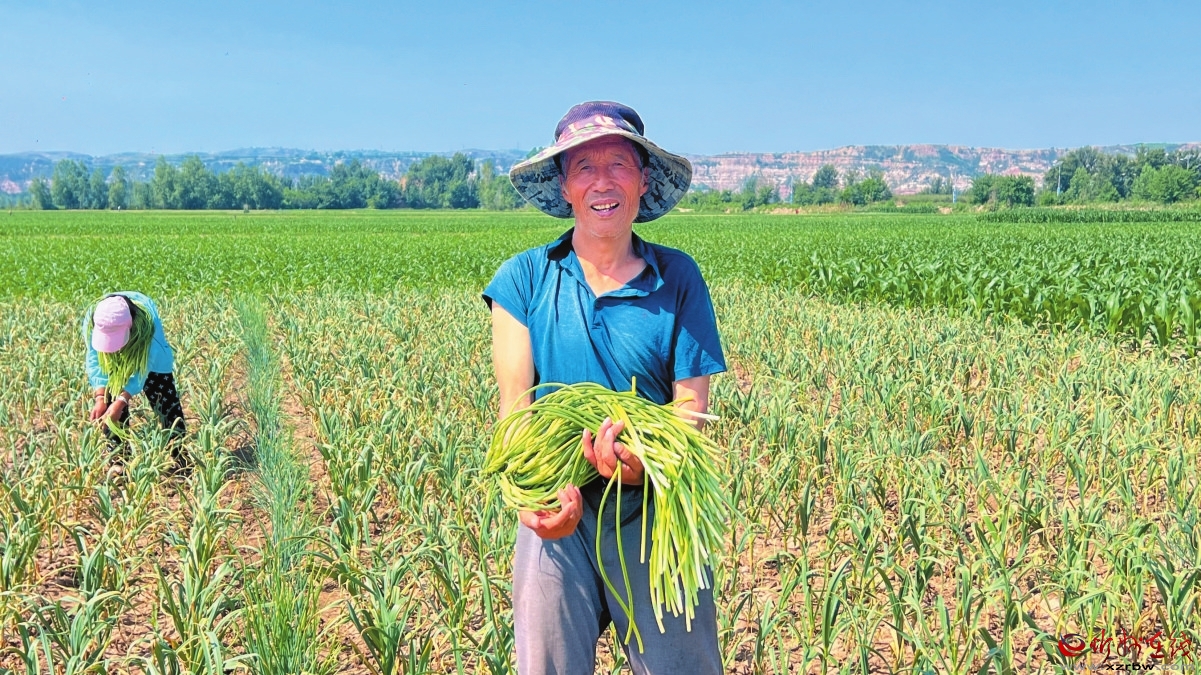 鄉(xiāng)村要振興,產(chǎn)業(yè)是關(guān)鍵支撐。眼下,正值河曲縣蒜薹成熟的時節(jié)。在西口鎮(zhèn)唐家會村的田間地頭,連片的蒜苗映入眼簾,一股濃濃的蒜香撲鼻而來。蒜農(nóng)們正俯身穿梭在蒜壟間,隨著手上一連串熟練的動作,一根根新鮮嫩綠的蒜薹被快速抽出??粗种杏执钟珠L的蒜薹,蒜農(nóng)們臉上洋溢著豐收的喜悅。蒜農(nóng)搶農(nóng)時、忙采收、話振興,小小紫皮蒜為鄉(xiāng)村發(fā)展注入了強勁活力。