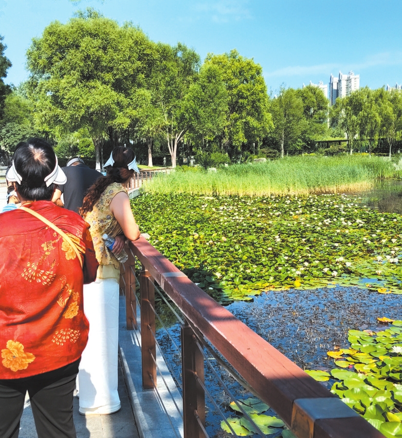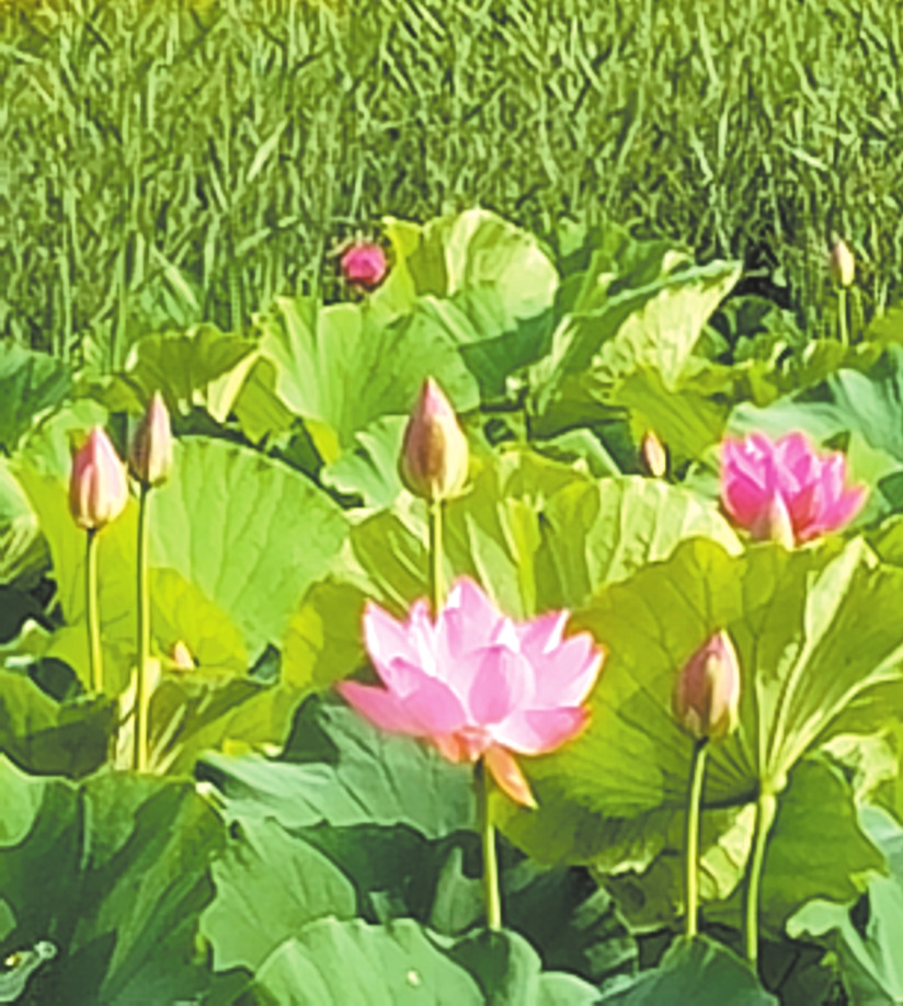 暮色漫上來時,荷塘最是熱鬧。穿花裙的小娃娃踮腳摸蓮蓬,銀發(fā)的老夫妻坐在石凳上數花瓣,晚歸的人駐了步,手機鏡頭里全是荷的身影。風推著荷浪輕搖,像在說:“別急,等你。”