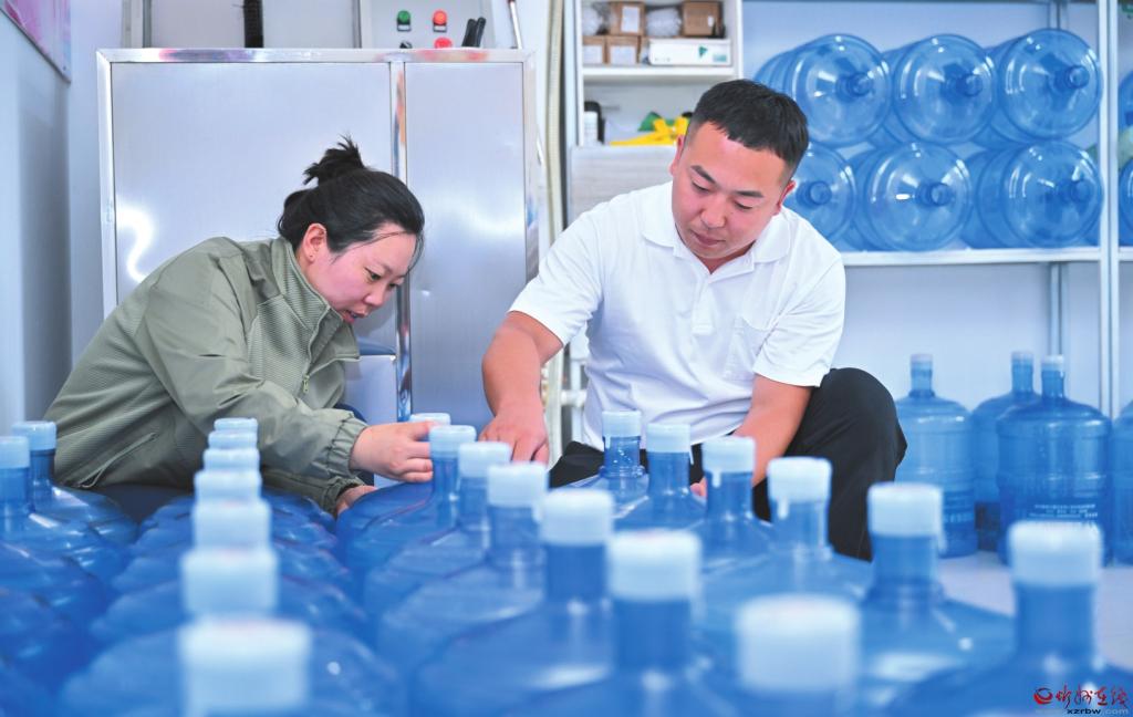 退伍軍人武靖返鄉(xiāng)創(chuàng)業(yè),在偏關(guān)縣創(chuàng)辦“武哈哈”純凈水公司,以軍人標準嚴控水質(zhì),讓家鄉(xiāng)父老喝上了健康、放心的優(yōu)質(zhì)飲用水,以實際行動助力鄉(xiāng)村振興。 (記者 馮曉磊攝)