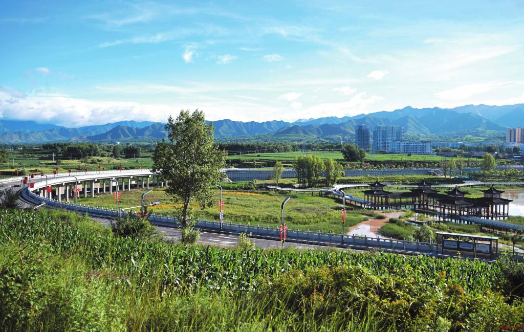 為拓展發(fā)展空間、拉大城市框架,五臺縣圍繞瀛湖、濕地、玉軒、文昌山等公園新建環(huán)城路,并在各個路段因地制宜配建文化景點(diǎn)、山水橋梁、游園、健身廣場、步道長廊等設(shè)施,繪就一幅“路在景中、景在城中”的城市立體畫卷。圖為北城區(qū)一景。(金俊賢攝)