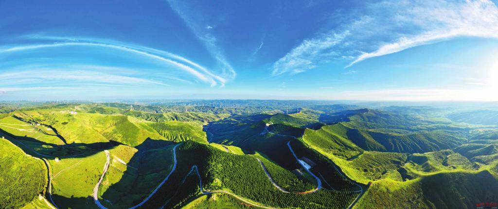 蒼翠欲滴的綠意,如潑墨般點(diǎn)染著黃土高原的溝壑梁峁,交織成一片生機(jī)盎然的“生態(tài)絨毯”。蜿蜒起伏的古長城和玉帶般優(yōu)雅伸展的長城一號(hào)旅游公路,形成一幅美不勝收的圖景。圖為長城一號(hào)旅游公路偏關(guān)段。(記者 馮曉磊攝)