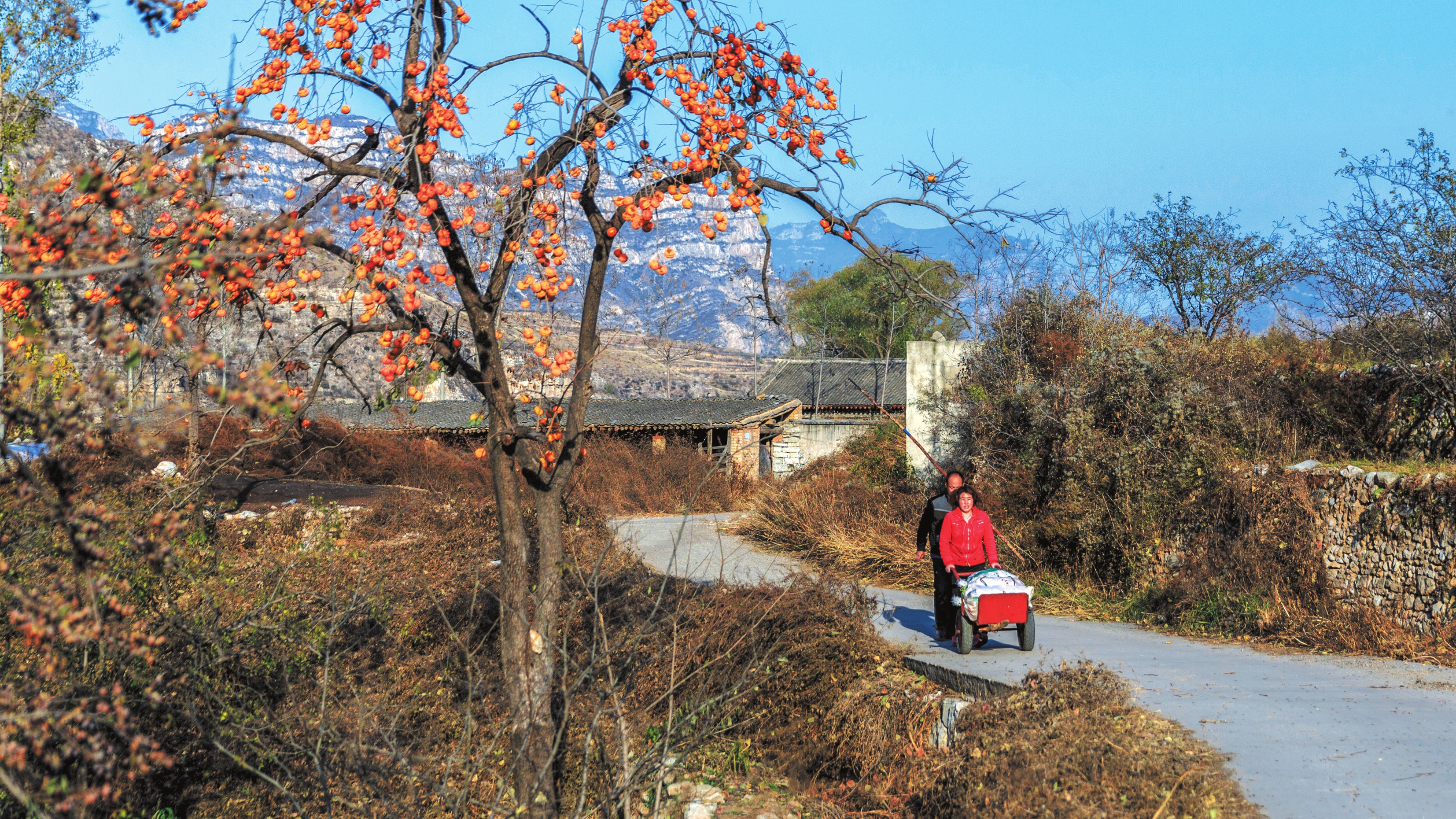 地頭那畔,景象便不同了。一對(duì)年輕的夫婦,正手腳利落地采摘、分揀柿子。竹籃里,橙紅的果實(shí)漸漸堆成小山。他們時(shí)而低語(yǔ),聲音輕得像風(fēng)拂過(guò)枝梢,說(shuō)的或許是今年柿子的成色,盤(pán)算著能賣(mài)個(gè)好價(jià)錢(qián);或許是在憧憬,等這筆錢(qián)到手,該給娃添置些什么。他們額上有細(xì)密的汗珠,眉宇間有勞作后的倦色,但那份倦色底下,卻藏不住一股子蓬勃向上的勁兒,一種屬于明天的、清亮亮的盼頭。