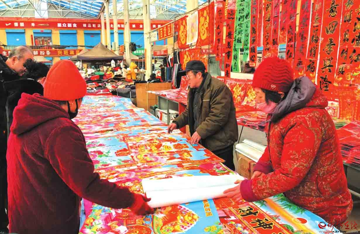 春節(jié)臨近,神池縣集貿(mào)市場(chǎng)迎來(lái)購(gòu)銷兩旺的高峰期,處處洋溢著喜慶祥和的節(jié)日氛圍。圖為春聯(lián)年畫攤位前,市民正在精心挑選心儀的年貨。(鄭志東 攝)
