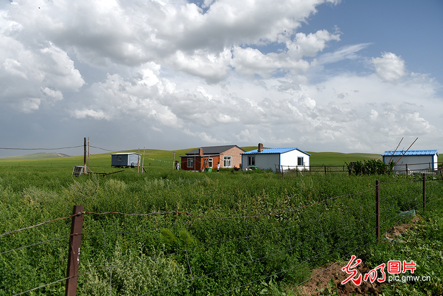 在其日麥拉圖家附近還有三所小房子,這是其日麥拉圖給自己的三個(gè)兒子準(zhǔn)備的?!皟鹤觽兌荚谄炖镔I(mǎi)了新房子、新車(chē)子,有時(shí)候也會(huì)帶著兒媳婦、孫子來(lái)牧場(chǎng),和我們一起養(yǎng)牛、養(yǎng)馬?!眻D為2020年8月2日,其日麥拉圖家。(潘迪攝/光明圖片)