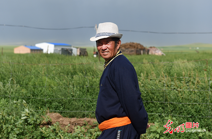 光明網(wǎng)訊(記者 趙艷艷 潘迪 李剛)提起其日麥拉圖,在陳巴爾虎旗的牧民中可謂無(wú)人不知、無(wú)人不曉。60年前,其日麥拉圖作為一名上海孤兒被內(nèi)蒙古自治區(qū)接到草原撫養(yǎng);60年來(lái),其日麥拉圖加入了黨組織,于1995年擔(dān)任陳巴爾虎旗東烏珠爾蘇木海拉圖嘎查書(shū)記,一干就是八年。圖為2020年8月2日,其日麥拉圖在自家牧場(chǎng)。(潘迪攝/光明圖片)