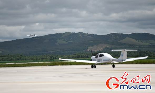 內(nèi)蒙古扎蘭屯成吉思汗機場,飛行學員們正在駕駛訓練機進行飛行訓練。光明網(wǎng)記者 潘迪攝