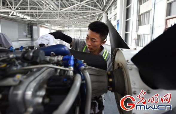 中國民航大學內(nèi)蒙古飛行學院的學員正在進行通用飛行器維修訓練。光明網(wǎng)記者 潘迪攝