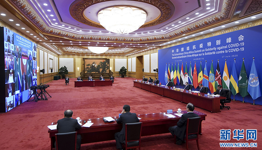 5月18日,習近平在第73屆世界衛(wèi)生大會視頻會議開幕式上發(fā)表題為《團結合作戰(zhàn)勝疫情 共同構建人類衛(wèi)生健康共同體》的致辭。 新華社記者 李學仁 攝 習近平表示,中國新冠疫苗研發(fā)完成并投入使用后,將作為全球公共產品,為實現疫苗在發(fā)展中國家的可及性和可擔負性作出中國貢獻。 6月,習近平主持了一場以“團結”命名的峰會——中非團結抗疫特別峰會。他提出“四個堅定不移”:堅定不移攜手抗擊疫情,堅定不移推進中非合作,堅定不移踐行多邊主義,堅定不移推進中非友好。習近平說,“我們反對將疫情政治化、病毒標簽化,反對種族歧視和意識形態(tài)偏見,堅定捍衛(wèi)國際公平正義”。