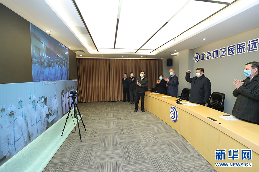 2月10日,習近平在北京調研指導新冠肺炎疫情防控工作。這是習近平在首都醫(yī)科大學附屬北京地壇醫(yī)院遠程診療中心,通過視頻連線武漢市收治新冠肺炎患者的金銀潭醫(yī)院、協和醫(yī)院、火神山醫(yī)院,了解情況、聽取意見和建議,慰問一線醫(yī)務工作者。 新華社記者 鞠鵬 攝 2月10日,他戴上口罩走進北京的街道、醫(yī)院和疾控中心。每到一地,他主動伸出手腕,接受體溫檢測。這天,北京累計確診新冠肺炎342例。當習近平出現在一個社區(qū)時,市民們從居民樓窗戶探出頭,向他揮手問好。他同出門買菜的市民聊天,問:“菜價怎么樣?”他說:“非常時期就不握手了!”“咱們一定要有信心,一定可以克服這場疫情!”市民回答:“一定能打贏!” 安華里社區(qū)黨委書記侯兵當天為習近平介紹防控措施,她說,總書記聽得很認真,還不時追問一些工作細節(jié),比如出入卡怎么發(fā)放和使用。看到居委會設置了管控服務、小區(qū)防控、宣傳動員、入戶摸排4個工作組,他一一詢問每個組的分工情況。“當我指著折線圖告訴總書記,居家觀察人數一直在下降的時候,總書記欣慰地點了點頭。” 1個月后,習近平來到武漢東湖新城社區(qū)。這天,中國內地新增確診病例24例,但武漢確診病例還有14514例,防控任務依然艱巨繁重。樓上居家隔離的人們看到習近平來了,從陽臺和窗戶探出頭,向他揮手問好。習近平仰起頭,揮手致意:“大家一起加油,再堅持一下!”他在武漢開座談會時特別叮囑,武漢人喜歡吃活魚,多組織供應。