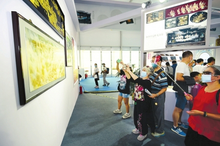中國藝術研究院的李亮從專業(yè)角度稱贊參展的推光漆器,“工藝很精細,一看就是大師作品?!?/p>