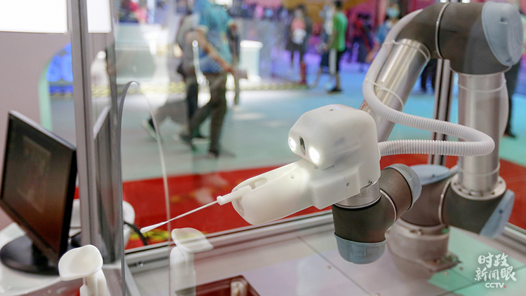△在今年服貿(mào)會上亮相的咽拭子采樣機器人。