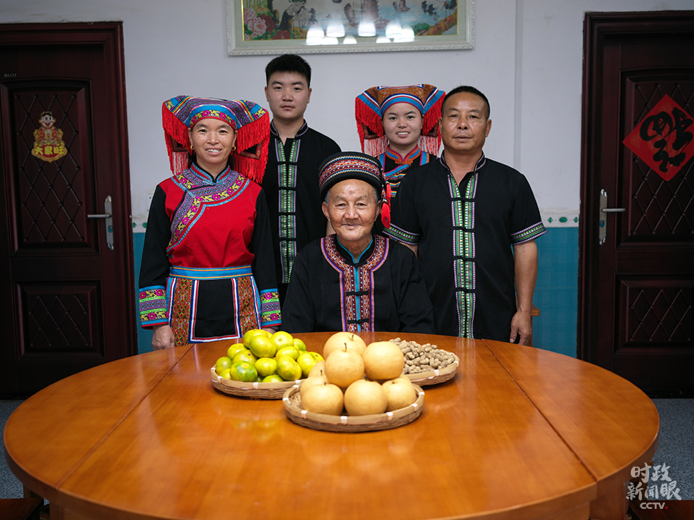 △朱中雄(中)一家當(dāng)天拍的全家福。(總臺(tái)央視記者彭漢明拍攝)