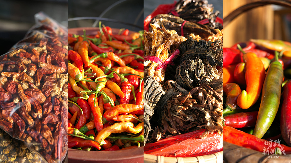 △ 沙洲村當(dāng)?shù)氐耐撂禺a(chǎn)以辣椒為主,包括鮮辣椒、干辣椒和腌辣椒等。(總臺(tái)央視記者彭漢明拍攝)
