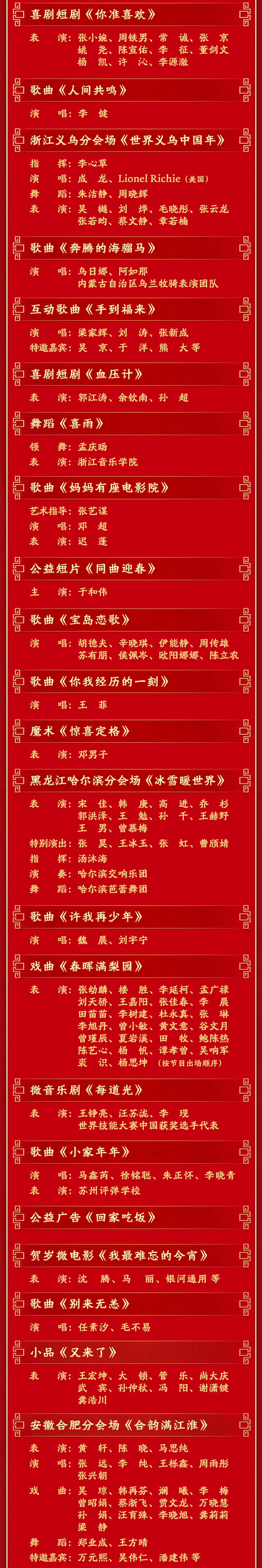 2026年春晚節(jié)目單來了!