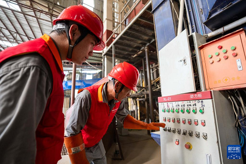 7月24日,在常德市鼎城區(qū)雙橋坪鎮(zhèn)一個水稻烘干工廠,國網常德供電公司電力工人在檢查烘干設備電力供應情況。(新華社記者 陳思汗 攝)