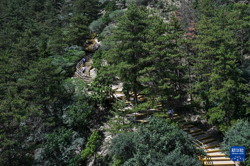 7月30日,游客在賀蘭山國(guó)家森林公園游玩。(新華社發(fā) 陳周旭洋 攝)