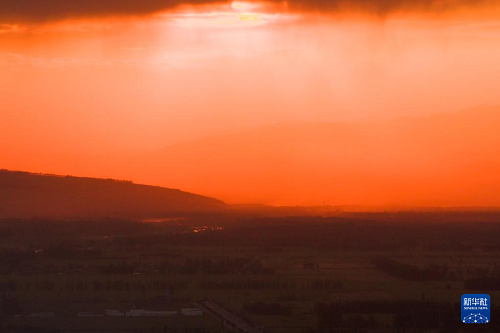 這是8月3日在那拉提草原拍攝的晚霞(無人機照片)。(新華社記者 辛悅衛(wèi) 攝)