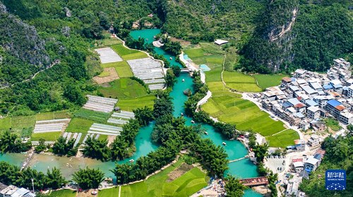 黔南布依族苗族自治州羅甸縣沫陽鎮(zhèn)大小井景區(qū)一隅(8月12日攝,無人機(jī)照片)。(新華社記者 陶亮 攝)