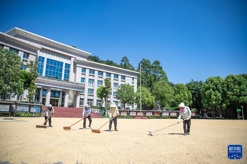 8月20日,人們在重慶市永川區(qū)紅爐鎮(zhèn)政府廣場上晾曬糧食。(新華社記者 黃偉 攝)