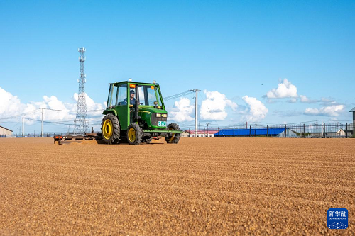 近日,位于內(nèi)蒙古呼倫貝爾市額爾古納市的呼倫貝爾農(nóng)墾拉布大林農(nóng)場(chǎng)19.22萬畝小麥迎來豐收季,當(dāng)?shù)剞r(nóng)民搶抓農(nóng)時(shí),以大規(guī)模機(jī)械化的方式開展收割、晾曬作業(yè)。