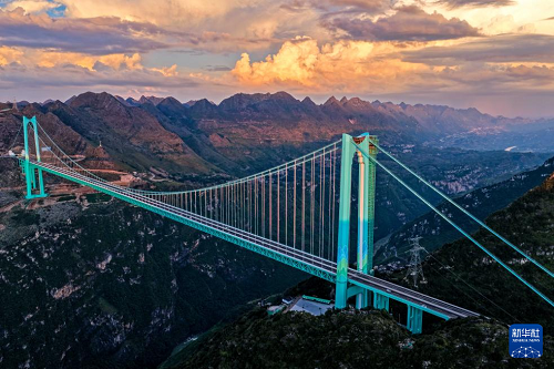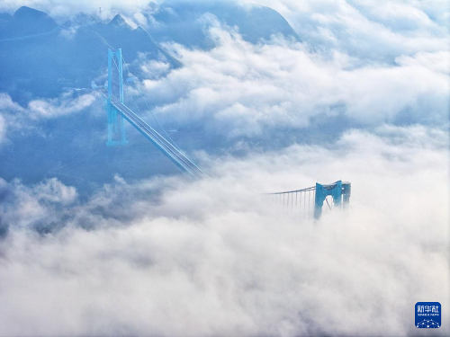 9月28日拍攝的云霧中的貴州花江峽谷大橋(無人機(jī)照片)。(新華社記者 劉續(xù) 攝) 經(jīng)過三年多建設(shè),新的世界第一高橋——貴州花江峽谷大橋于9月28日正式建成通車。 花江峽谷大橋是貴州六枝至安龍高速公路的控制性工程,大橋全長2890米,主跨1420米,是目前世界山區(qū)峽谷第一大跨度鋼桁梁懸索橋;其橋面距水面垂直高度625米,超越北盤江第一橋成為新的世界第一高橋,被譽(yù)為“橫豎都是第一”。在不同時段的光線下,世界第一高橋呈現(xiàn)出不同的美景。 (責(zé)任編輯:蔡文斌) |