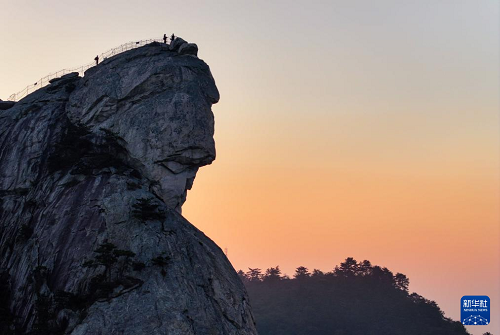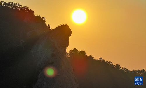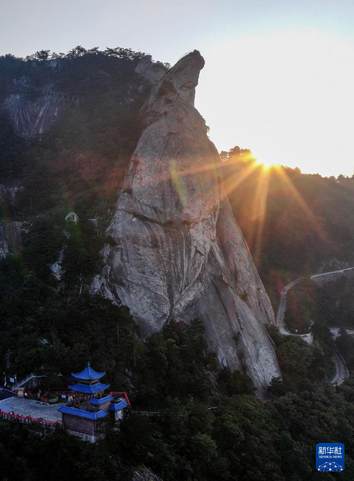 秋日清晨,初升的太陽照在湖北省麻城市龜峰山景區(qū)的奇峰怪石上,勾勒出“龜峰旭日”的壯麗景象。