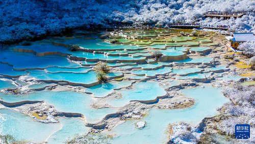 俯瞰黃龍景區(qū)五彩池(10月21日攝,無人機(jī)照片)。(新華社發(fā) 孫家鵬 攝) 10月21日,四川省阿壩藏族羌族自治州黃龍景區(qū)迎來今秋第一場降雪,五彩池與皚皚白雪交相輝映,美不勝收。 (責(zé)任編輯:蔡文斌) |