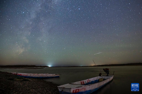 10月28日在黑龍江省嘉蔭縣黑龍江畔拍攝的秋季銀河下的黑龍江。(新華社發(fā) 李紹軍 攝)