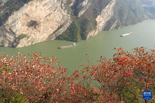 11月16日,船舶行駛在湖北省宜昌市秭歸縣西陵峽水域(無人機(jī)照片)。(新華社發(fā) 王輝富 攝)