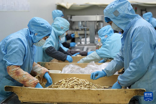 工作人員在寧夏固原市隆德縣一家藥材加工企業(yè)分揀黃芪(12月6日攝)。(新華社記者 王鵬 攝)