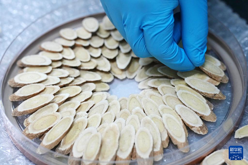 工作人員在寧夏固原市隆德縣一家藥材加工企業(yè)包裝黃芪(12月6日攝)。(新華社記者 王鵬 攝)