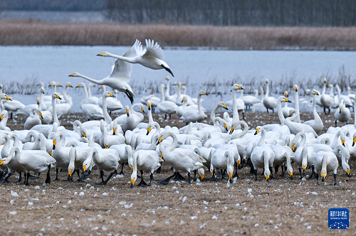 進入冬季,大批白天鵝來到河南省三門峽市黃河濕地棲息越冬。近年來,隨著當?shù)夭粩嗉訌婞S河沿岸濕地生態(tài)保護工作,白天鵝的數(shù)量逐年增加。目前,三門峽黃河岸邊40余萬畝淺灘濕地已迎來萬余只白天鵝。