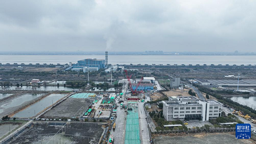 月20日拍攝的錢塘江高鐵盾構(gòu)隧道施工現(xiàn)場(無人機(jī)照片)。(新華社發(fā) 王欣 攝)