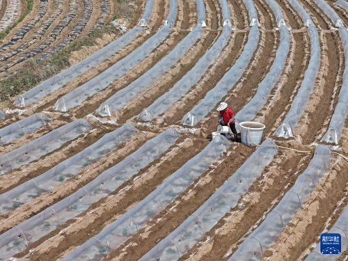 初春時節(jié),廣西南寧市邕寧區(qū)蒲廟鎮(zhèn)村民忙著春耕春管,田園里一派繁忙景象。