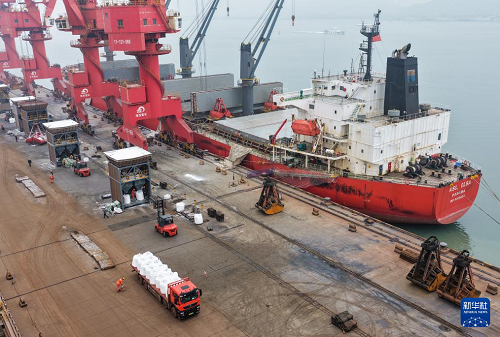 春耕農(nóng)忙時(shí)節(jié),江蘇連云港港暢通農(nóng)用物資綠色通道,對(duì)化肥等農(nóng)資做到隨到隨卸,裝車(chē)運(yùn)輸全程高效流水作業(yè),確保春耕農(nóng)資供應(yīng)。