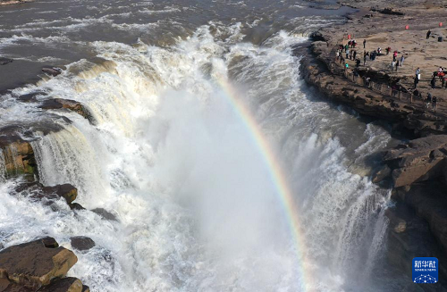 驚蟄時(shí)節(jié),隨著氣溫回暖,黃河上游河段融冰開河速度加快,壺口瀑布水量增大。
