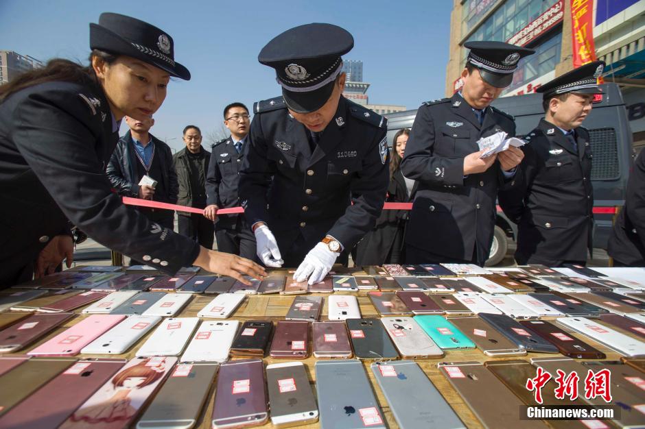 3月2日,山西太原警方發(fā)還民眾被盜手機(jī)。近日,太原市公安局偵破一個(gè)手機(jī)扒竊犯罪團(tuán)伙,破獲案件200余起,追繳手機(jī)180余部。張?jiān)?攝