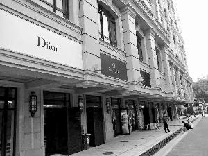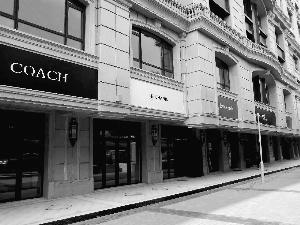昨日,北京晨報(bào)記者來(lái)到位于建國(guó)門橋附近的中海楓丹公館,看到整個(gè)樓盤有五棟樓,呈凹字形。建筑物四周設(shè)有30多個(gè)大小不一的底商,每個(gè)底商頂部都掛著一個(gè)看似國(guó)際大牌的招牌,既有奢侈品,也有快餐業(yè),顏色鮮艷,十分奪目。就在這些大牌的招牌旁邊,張貼著大幅廣告“黃金旺鋪火爆招商中”。