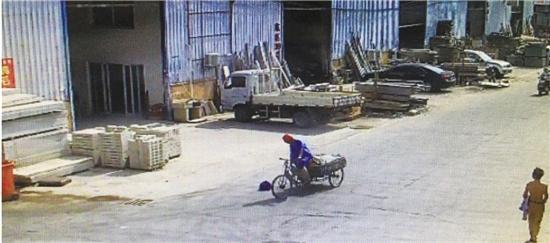 直到上午8點50分左右,一名騎著三輪車的男子經(jīng)過這里,下車查看后把包撿走了?!八┲{色的工作服,戴著個紅色的安全帽,把包打開看了下,然后就撿起來放到了車上。”