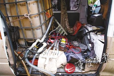 經(jīng)審訊,嫌疑人陳某曾因盜竊柴油被判入獄,在獄中認識張某、張某某。3人出獄后,在瀘州買了一輛二手福田面包車,經(jīng)過精心改裝并換上假牌照,往返于川渝兩地,在G93渝瀘高速各服務區(qū)專門盜竊貨車油箱里的柴油。偷油設(shè)備自動化,改裝車內(nèi)裝著好幾個大油桶,用一根塑料管,通過一個油泵,把貨車油箱里的油直接抽到桶里。油泵電源由蓄電池提供,為避免發(fā)動機聲音過大,油泵還用舊衣服層層包裹。馬力大的油泵,1分鐘就能把貨車滿滿一箱油抽光。為了更快抽油,嫌疑人甚至并聯(lián)4個大油泵。與以往拿著吸油管的小賊比,這樣的裝備偷油速度快10倍,比加油速度快幾倍。6月以來,該團伙僅在江津范圍內(nèi)就瘋狂作案20余起,盜得柴油5000余升,涉案金額數(shù)萬元。陳某落網(wǎng)當天,警方在面包車上查獲的1000余升柴油是陳某獨自在珞璜服務區(qū)連續(xù)作案5起盜得。