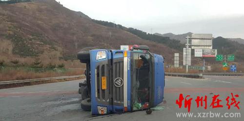2016年11月19日17時00分許,山西交警高速二支隊九大隊民警翟躍、郭騏源接到報警稱:在五保高速12km(五臺山景區(qū)收費站內(nèi)廣場)處,有一輛藍色歐曼牌重型半掛貨車因操作不當,將掛車內(nèi)裝的鋼棒側(cè)滑,導(dǎo)致車輛側(cè)翻,造成車輛及路產(chǎn)不同程度損壞的道路交通事故。大隊民警第一時間趕赴現(xiàn)場,及時詢問當事人是否受傷,是否需要撥打“120”急救,并了解了當時的事發(fā)情況。當事人稱:“自己一個人開車回定襄,為省過路費,想著從五臺山景區(qū)高速口下,繞行低速回定襄,由于在下匝道時,打方向過急,車速較快,將車上所拉的鋼棒側(cè)滑,造成車輛的側(cè)翻,所幸人沒有受傷?!敝螅窬瘜ΜF(xiàn)場進行勘查,并調(diào)取監(jiān)控視頻,發(fā)現(xiàn)車輛在轉(zhuǎn)彎時,車速較快,駕駛員操作不當是造成事故發(fā)生的原因。