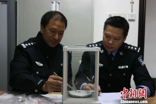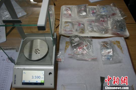 海關(guān)緝私警察正在給查獲的寶石稱重 關(guān)悅 攝