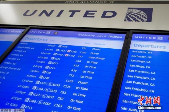 資料圖。2015年7月8日,美國聯(lián)合航空公司電腦系統(tǒng)出現(xiàn)故障,導致其在全美所有機場的航班停飛約2小時。