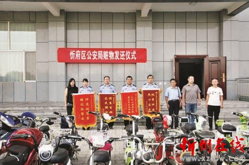 近日,忻府區(qū)公安局舉行贓物發(fā)還儀式,就近期偵破案過程中收繳的部分贓物,包括電動(dòng)摩托車21輛、電動(dòng)三輪車1輛,向失主進(jìn)行了集中返還,受到群眾的交口稱贊。魯明強(qiáng) 劉 潔 攝