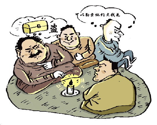 聽說家鄉(xiāng)境內(nèi)明長(zhǎng)城有個(gè)烽火臺(tái)下埋有“鎮(zhèn)物”一口金鍋,一伙盜賊試探串聯(lián)、密謀踩點(diǎn)、糾集分工、盜挖文物。然而,令他們沒想到的是,在其晝息夜掘的同時(shí),另一伙人卻在旁窺伺,冒充警察堵住正在挖洞作業(yè)的盜賊進(jìn)行敲詐勒索,甚至在索要錢財(cái)未果后,將未及時(shí)逃脫的盜賊扭送公安機(jī)關(guān),最終兩伙不法分子均受到法律制裁。