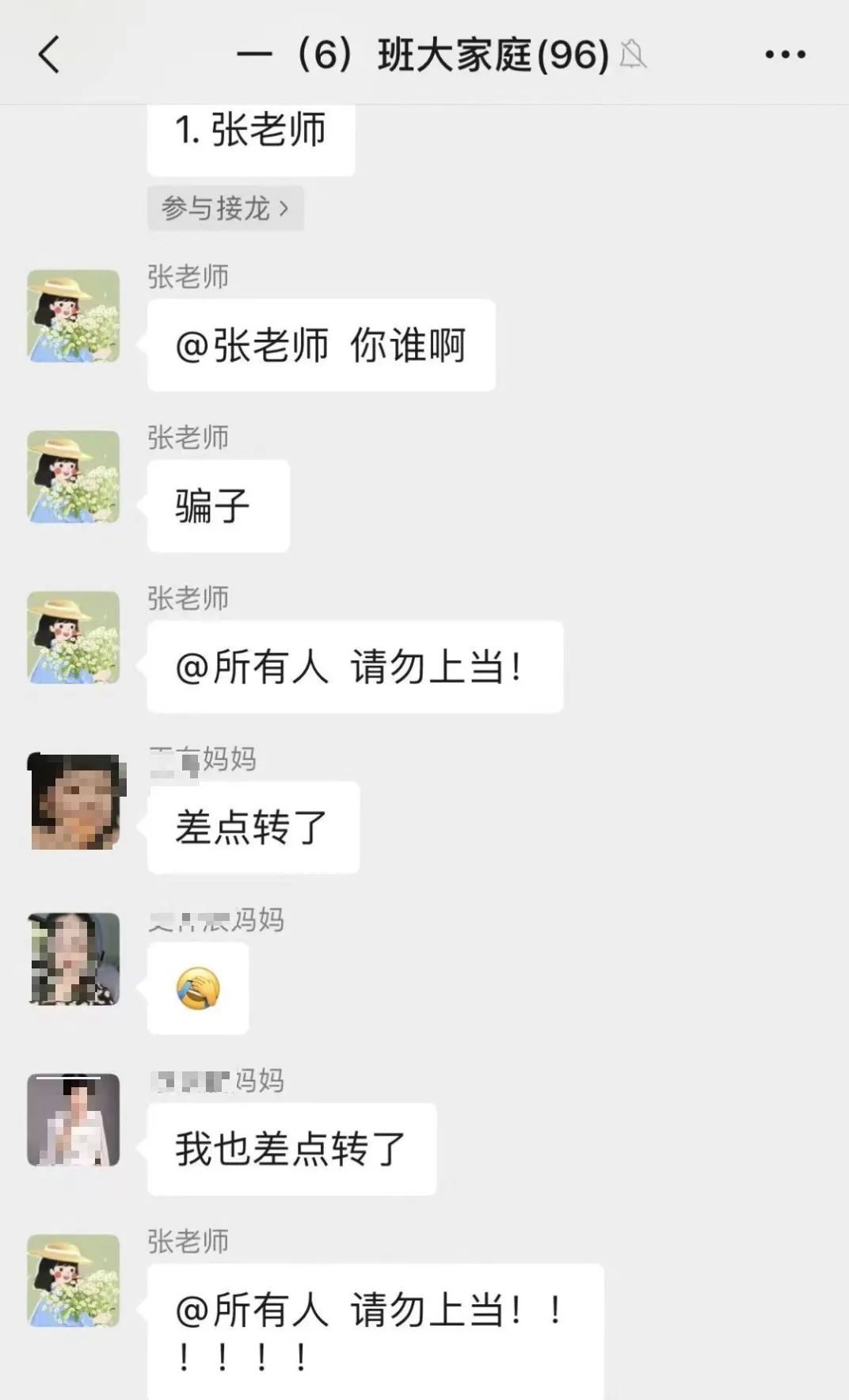 騙子通過盜取或克隆老師、家長的微信、QQ等賬號,混進家長群,利用家長對老師的信任,假借老師之名,以需要繳納服裝、教材、資料等費用為由實施詐騙。