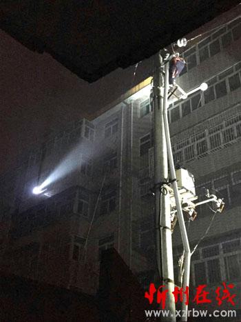 客戶從自家陽臺上用手電筒為搶修隊員照明協(xié)助搶修