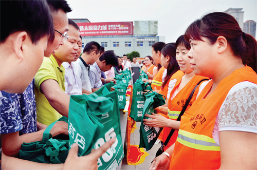 本報訊 6 月26 日下午,忻州市吉達惠康藥業(yè)攜手仁和中方藥業(yè)、廣州白云制藥、太極集團、東方慧醫(yī)等單位,在城區(qū)體育廣場舉行了“夏日送清涼,關(guān)愛環(huán)衛(wèi)者”活動,為每位環(huán)衛(wèi)工人準(zhǔn)備了2 盒阿莫西林、1 包防暑茶、1 盒藿香正氣口服液、1 支護手霜、防1 個霧霾口罩等防暑品,共1000 余份,價值6 萬余元。